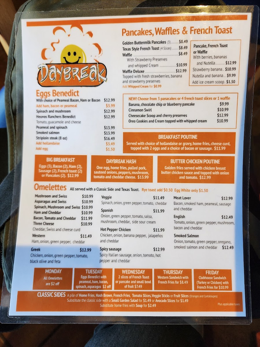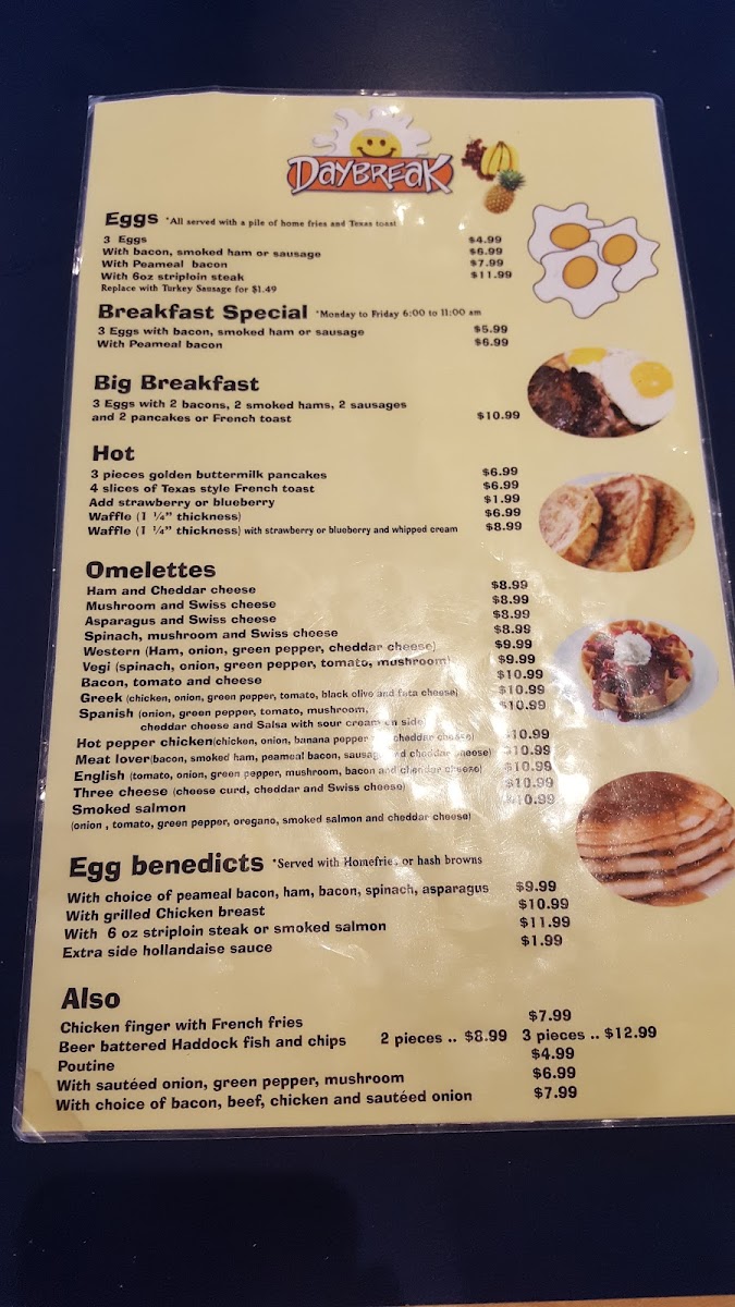Welcome to Daybreak, your go-to brunch spot located at 16715 Yonge St in Newmarket, ON. This charming eatery captures the essence of a classic 80s North American diner, making it the perfect backdrop for a cozy meal. Their menu offers generous portions at incredibly affordable prices, with highlights including the delectable fish and chips, big breakfasts, and classic egg benedict.