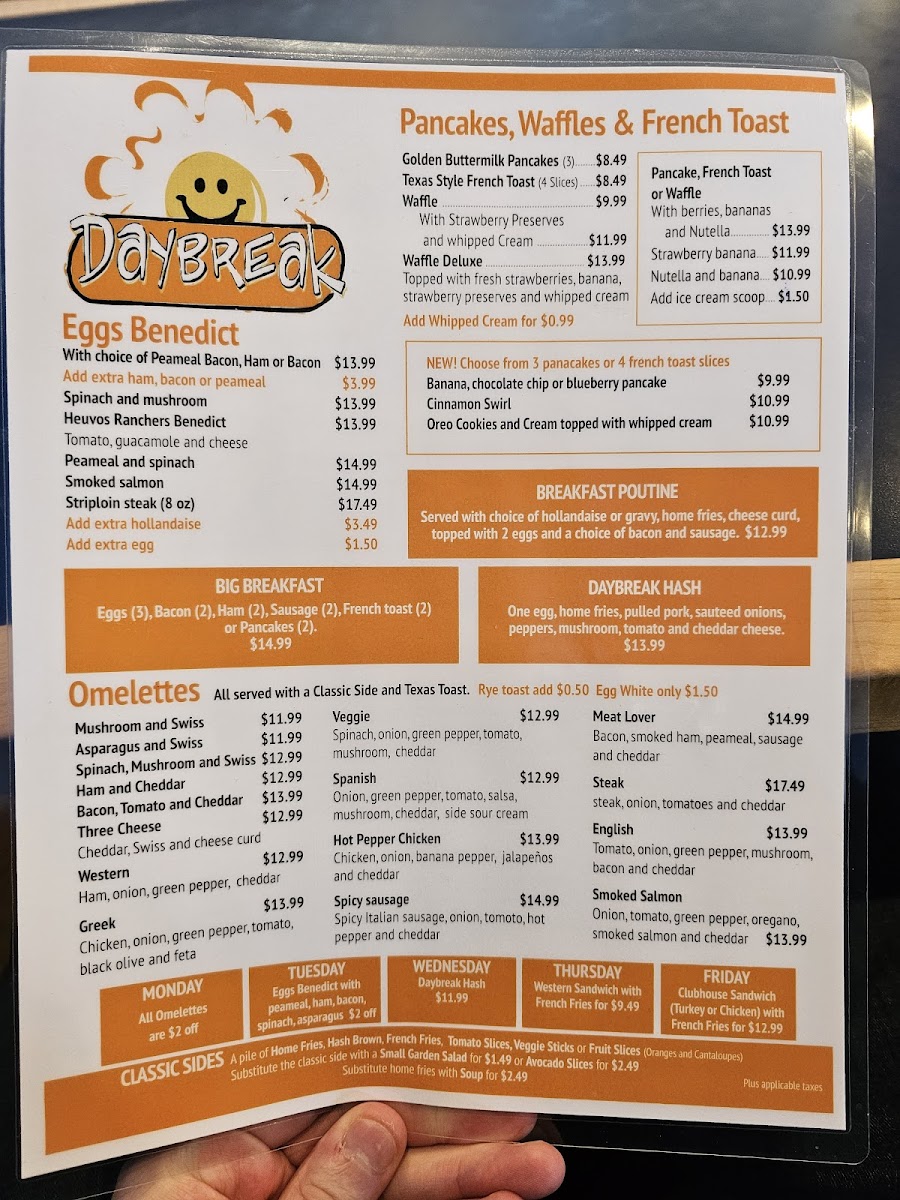 Customers rave about the attentive service, often mentioning the friendly staff like Shirley, who add a personal touch to your dining experience. Whether you're in the mood for a hearty three-egg breakfast or a perfectly poached egg, Daybreak ensures that every dish is cooked to perfection.